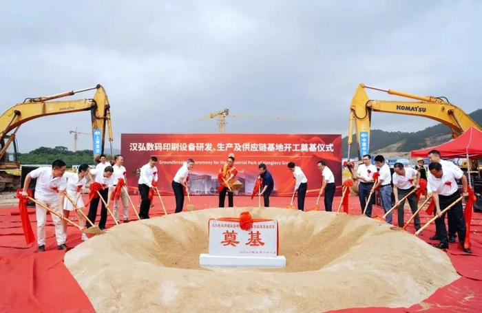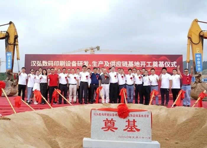 2020年9月28日上午,在禮炮齊鳴、鼓樂齊奏聲中,漢弘集團規模化、全球化和多元化發展戰略的重要標志項目——漢弘數碼印刷設備研發、生產及供應鏈基地項目開工奠基儀式隆重舉行并取得圓滿成功。UV打印機品牌漢拓數碼對此表示熱烈祝賀。