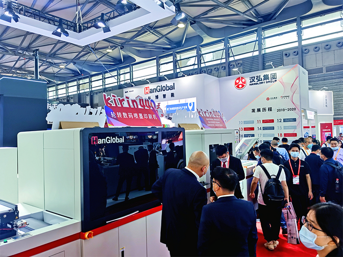 值得一提的是,本屆全印展,漢弘集團重要的標簽、書刊等數字印刷設備的研發、生產、銷售主體——弘博智能與近700家展商同臺“競技”,公司拳頭產品——高速輪轉數碼噴墨印刷機Kirin440首發亮相,以數字印刷驅動智造未來,展現硬核實力,吸引著采購商的目光。除了弘博,漢弘集團旗下優秀產品系列包括漢拓UV打印機、弘美紡織印花機、誠拓成衣印花機、漢華瓦楞包裝機、弘銳PCB噴印機。