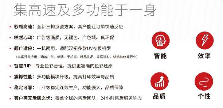 2021年廣州迪培思春季廣告展上,漢拓數(shù)碼推出全新的京瓷噴頭應(yīng)用解決方案—三排京瓷,多功能模塊升級,提高印刷效率和質(zhì)量適用于漢拓多款UV卷板一體打印機,涵蓋廣告、標(biāo)牌、手機外殼、精品禮品、家居建材、裝飾等行業(yè)。這是漢拓UV打印機在京瓷噴頭應(yīng)用升級上的又一個成功案例。