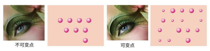 可變點技術按字面理解就是墨滴的大小可變,首先帶來的直接效果就是節省UV平板打印機的油墨成本。其次,就是圖像的過渡處理了,早期針對圖像的過渡很多采用的是用淺色系的油墨打印需要過渡的區域,而有了可變點技術后,用小墨滴打印過渡區域,即使沒有淺色油墨,也可以使打印的圖像效果更加細膩。