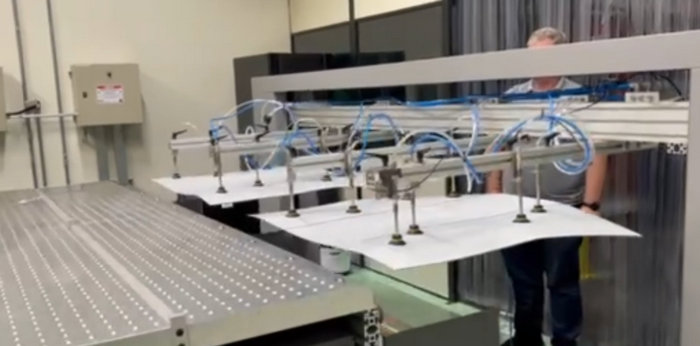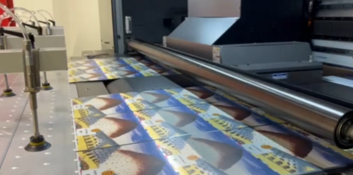 上圖為漢拓國外客戶利用HTA2500 ROBO高速UV打印機對鍍錫薄板進行噴墨加工,配合漢拓獨特的油墨方案,打印后可直接進入下道成型的工序。最高每小時300平方米以上的產能,滿足了客戶日常訂單的需求。自動上下料系統,節省人力,為產線全自動聯線提供了良好的基礎。