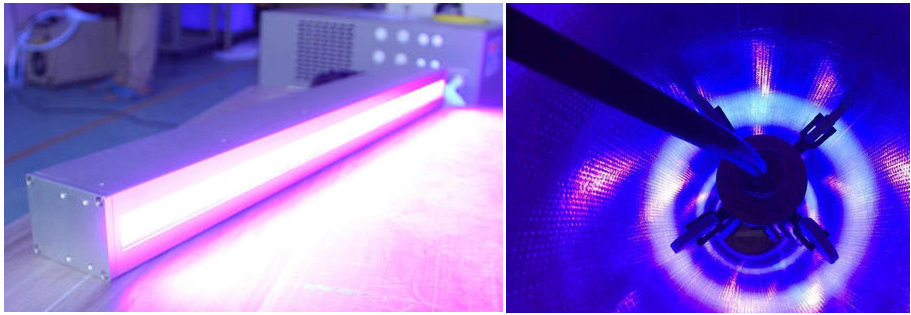 油墨的干燥形式總體上分為物理干燥和化學干燥,UV固化干燥屬于物理干燥。UV固化干燥是以可輻射聚合的連結料為基礎的,這種干燥方法要求含有完全不同的連結料的特殊油墨和附加的光敏劑。使用UV固化干燥裝置,只要有紫外線輻射,墨層就會發生聚合作用并完全干燥。而且聚合作用發生時間很短,基本不到一秒鐘,可以做到即噴即取。黑色對UV輻射在墨層中的滲透有阻礙作用,黑墨的固化效應也要比其他彩色或亮光油的固化效應弱,但基本能夠滿足一般的需求,而對固化效果有較高要求的可以再增加光油工序處理。